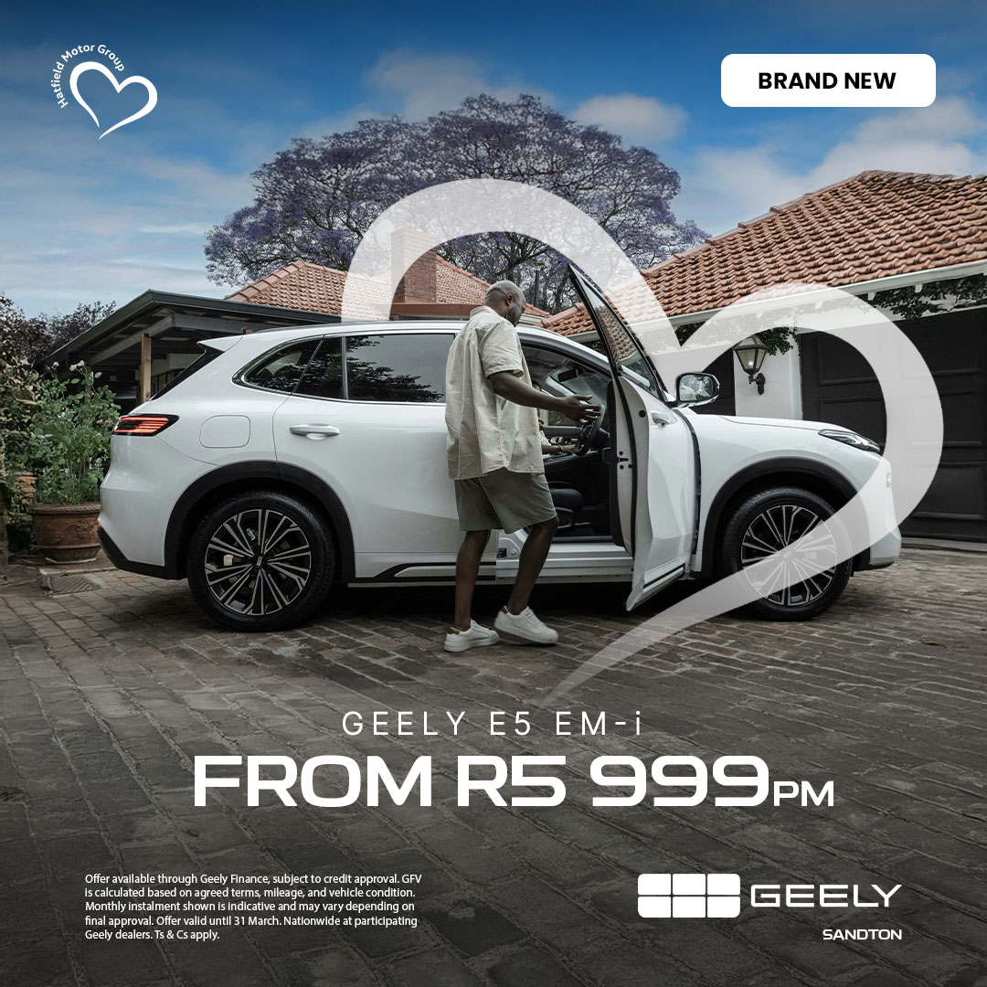 Offer available through Geely Finance, subject to credit approval. GFV is calculated based on agreed terms, mileage, and vehicle condition. Monthly instalment shown is indicative and may vary depending on final approval. Offer valid until 31 March. Nationwide at Geely dealers. Terms and conditions apply.